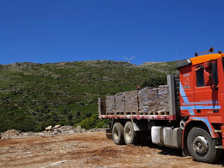 Στην πλαγιά του χωριου ”Μελισσώνας”, κοντά στην πόλη της Καρύστου στη Νότια Εύβοια, βρίσκονται τα Δυο Λατομεία μας που εκτείνονται σε μια έκταση 120 στρεμμάτων, και που εδώ και 40 χρόνια η μεθοδική εκμετάλλευσή τους, είναι η βάση της δραστηριότητας της ΚΑRYSTOLITHOS. Παράγουν εξαιρετικής ποιότητας και μεγάλης αντοχής σχιστολιθικές πλάκες Καρύστου, κατάλληλες για δάπεδα, επενδύσεις, στέγες, καθώς και πέτρες για κατασκευή και διακόσμηση εσωτερικών και εξωτερικών χώρων. Η εκσκαφή γίνεται επιφανειακά με σύγχρονες μεθόδους που μας παρέχουν ικανότητα τροφοδοσίας ετησίως, πάνω από 90.000m3, και μας επιτρέπουν να εγγυόμαστε σταθερά, μεγάλα αποθέματα. Η εκμετάλλευση γίνεται με μεγιστο σεβασμό στο περιβάλλον έτσι ώστε μετά το τέλος της εξόρυξης ο χώρος να αποδοθεί πλήρως ενταγμένος στο τοπικό οικοσύστημα.